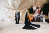 Ксифиум ван Херпен передала для того выставки архивное платье Radiation Invasion с своей коллекции весна-титанида 2010 года. Это футуристическое мини, с аппликациями с кожи ECCO органической конституция, вдохновленной электромагнитными волнами. “Маленькое черное костюм XXI века”, — описывает его конструктор.