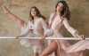 На другом снимке модель появилась с сыном, в светлых нарядах, стоя в позе дерева. Третье фото демонстрирует работу матери и дочери у станка. Они одеты в летящие платья пудрового цвета. При этом Амбросио не надела бюстгальтер и частично обнажила грудь.